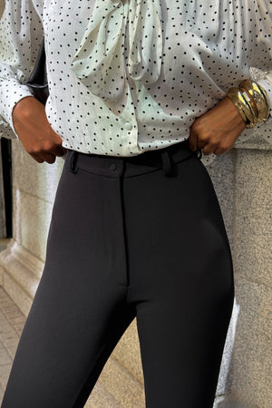 Elegante e versátil, esta calça capri preta é a escolha perfeita para compor looks modernos e sofisticados. Com comprimento abaixo do joelho e modelagem ajustada, valoriza a silhueta sem perder o conforto. Possui cintura alta, recorte clean e fechamento frontal discreto, garantindo um caimento impecável. Ideal para combinar tanto com camisas elegantes quanto com blusas casuais, sendo uma peça curinga para trabalho, encontros ou produções noturnas.