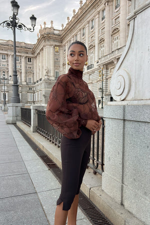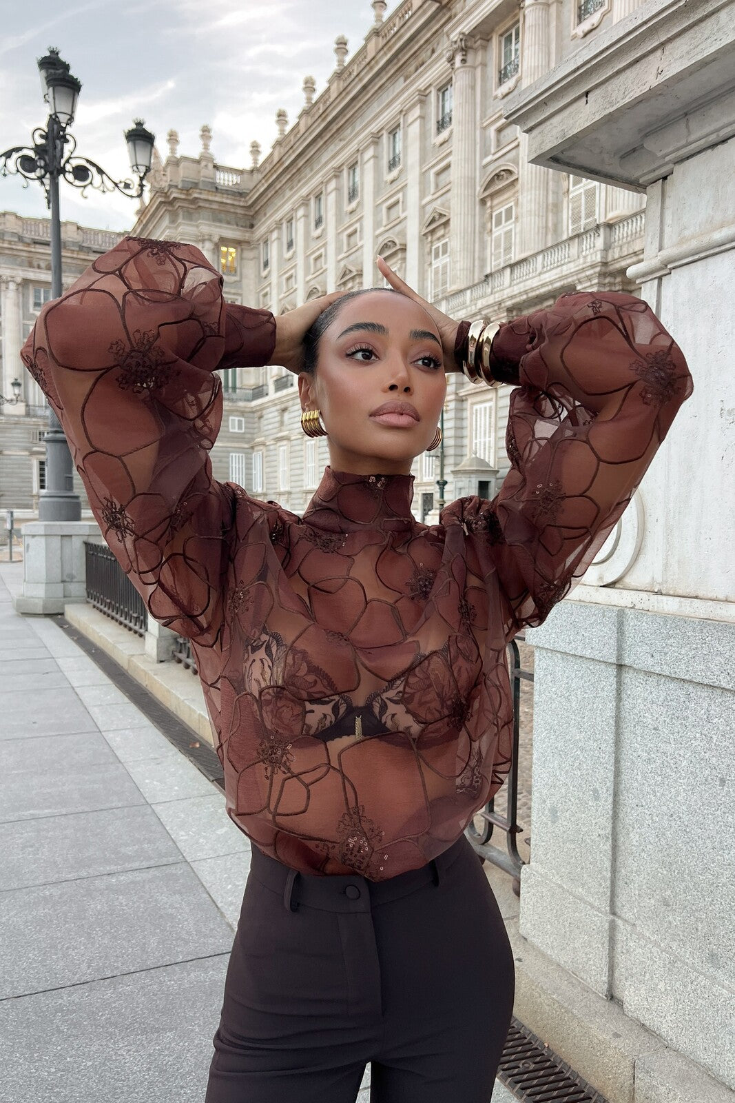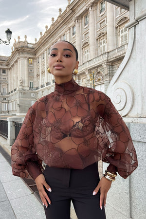BLUSA TULE CASTANHA FLOR ORGANZA