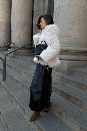 This short faux fur coat is the perfect choice to add a luxurious touch to your winter looks. With its soft texture and elegant volume, it wraps the body in comfort while creating a modern and sophisticated silhouette. The fluid cut and cropped length make it easy to pair with wide-leg trousers, dresses, or jeans, making it an extremely versatile piece. Without closures, the clean and contemporary design is ideal for those who prefer an effortless yet impactful style. A statement piece that transforms any outfit with ease.