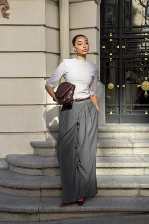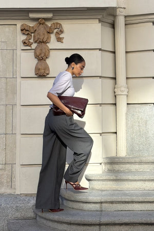 Designed for the contemporary woman who values sophistication and comfort, these low-waist oversized trousers are an icon of effortless elegance. Featuring a wide and fluid silhouette with deep front pleats that enhance the impeccable drape. The low-rise design adds a modern twist to classic tailoring, perfect for refined ensembles or elevated urban looks. Pair with fitted tops or structured blazers for a striking presence in any setting.