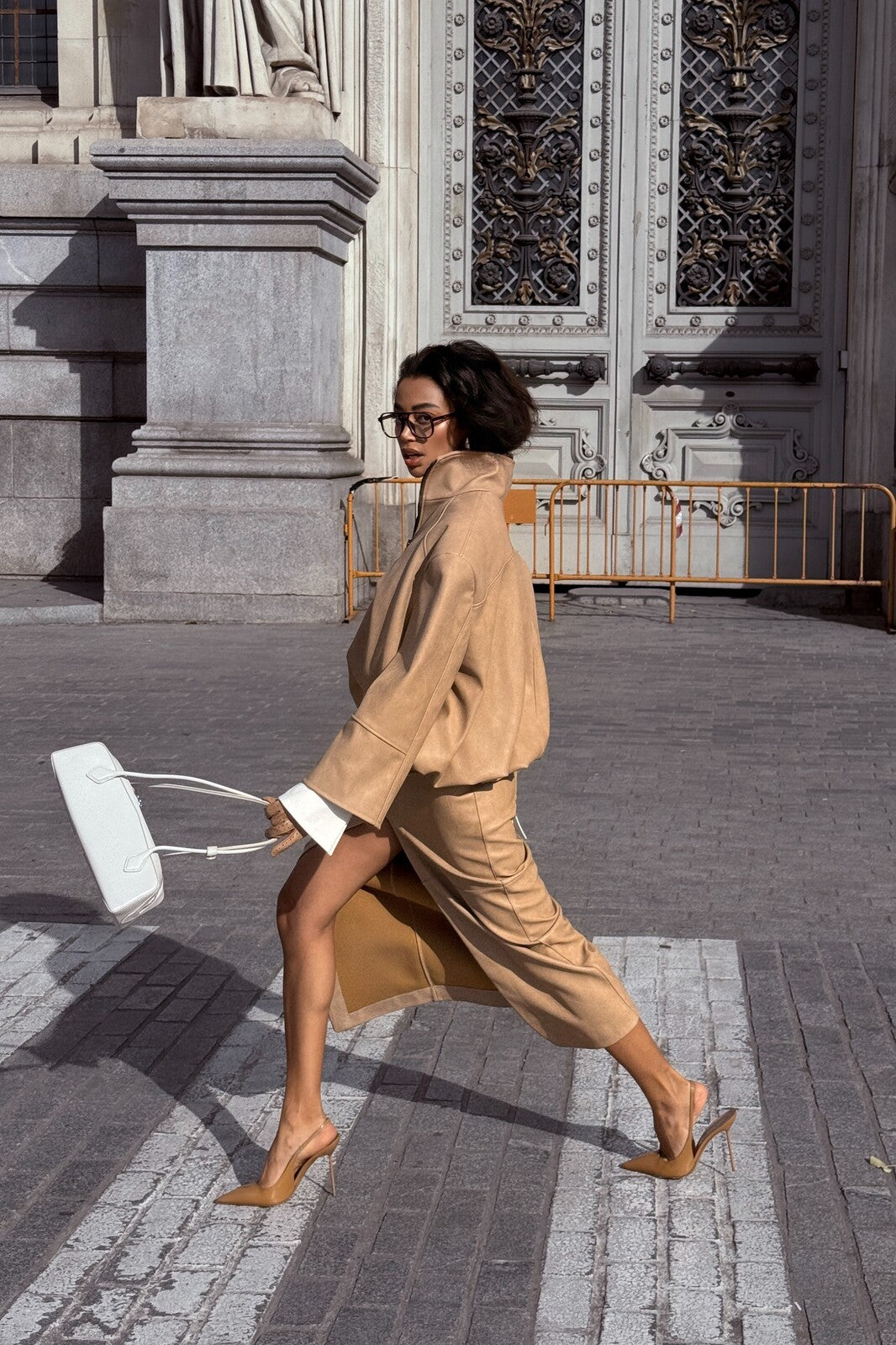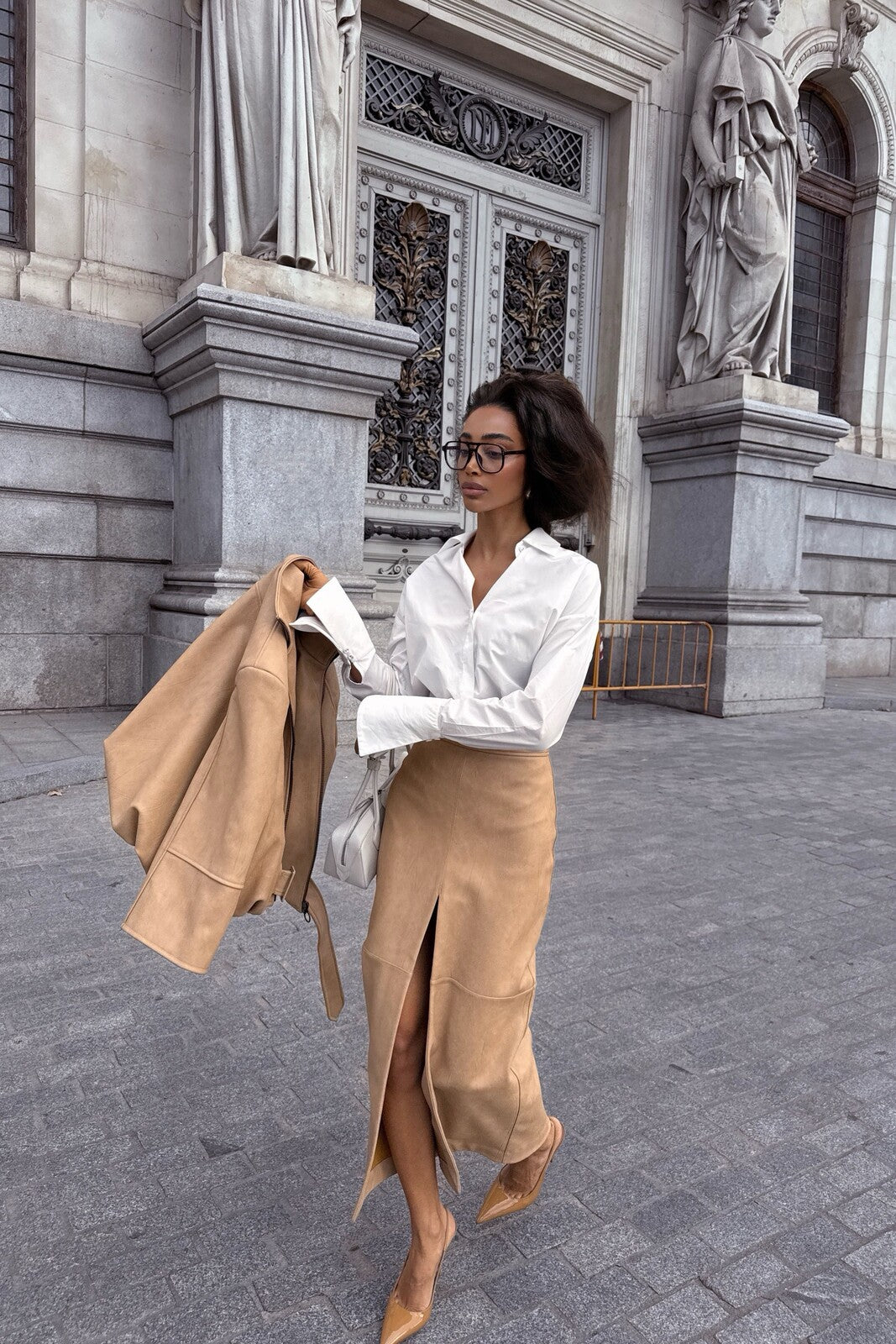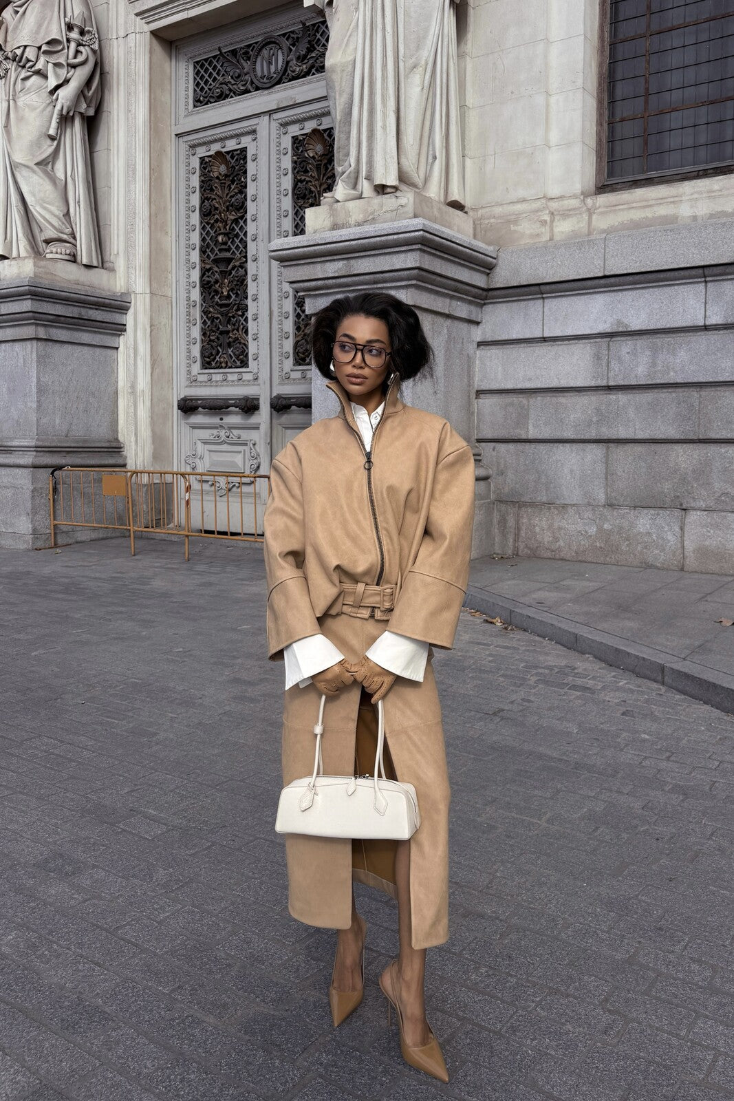 Falda midi en cuero con textura grano, estructurada y elegante. Corte recto con abertura frontal que aporta un toque sensual y contemporáneo. Incluye cinturón incorporado ajustable que define la cintura con sofisticación. Un clásico moderno que combina sastrería y actitud, ideal para looks urbanos refinados.