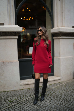 ROBE COURTE ROUGE À MANCHES LONGUES