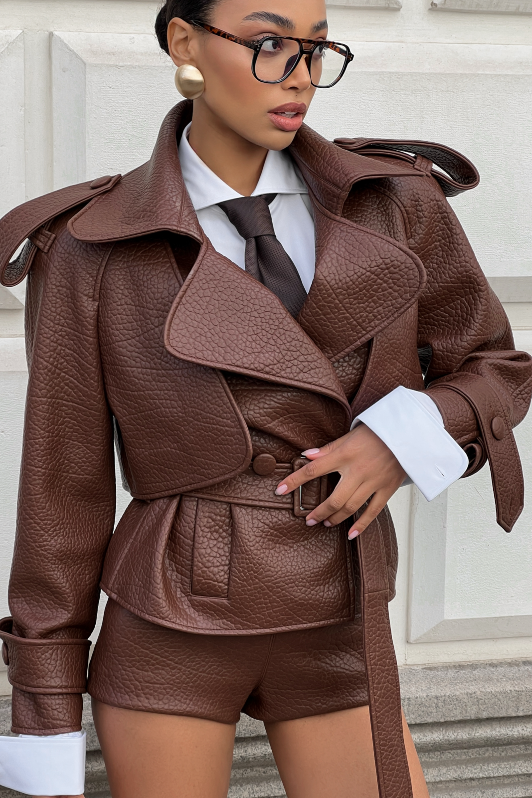 Short marrone garzato. Chiusura invisibile. Abbinalo al cappotto e al top coordinati.