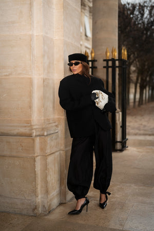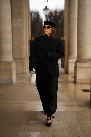 Cappotto strutturato in lana nera che unisce minimalismo e sofisticatezza in un design pulito e contemporaneo. Il taglio dritto e il colletto alto donano un’eleganza architettonica, mentre la chiusura frontale con bottoni a pressione nascosti assicura una silhouette lineare e moderna. La lana di alta qualità offre calore con leggerezza, rendendolo ideale per i giorni freddi senza rinunciare allo stile. Le tasche con patta aggiungono un tocco utilitario discreto, mentre la vestibilità impeccabile valorizza la postura ed eleva immediatamente qualsiasi look urbano o formale. Un capo senza tempo pensato per donne che cercano stile raffinato e funzionalità senza sforzo.