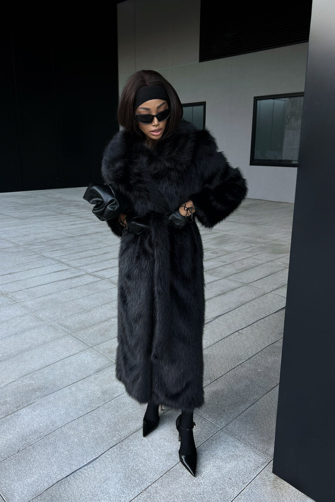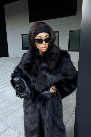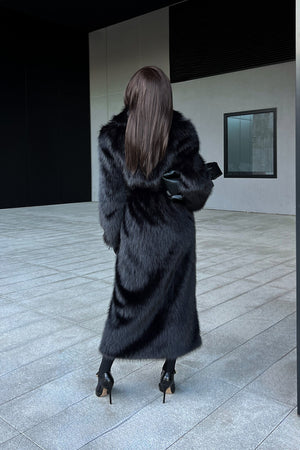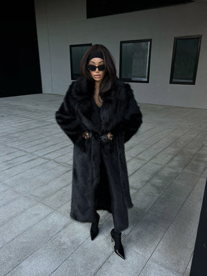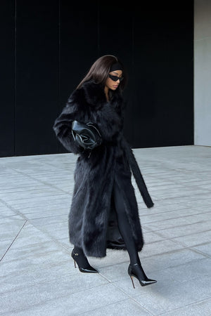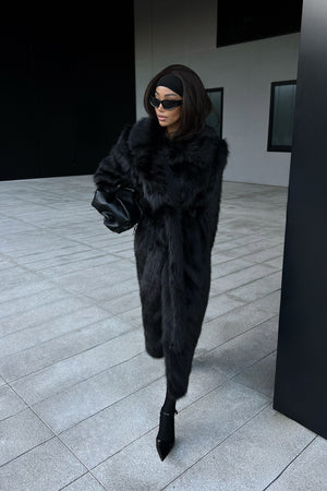 Un tocco di lusso in ogni dettaglio. Confortevole, elegante e imponente, questo vestito lungo in ecopelliccia rappresenta l’equilibrio perfetto tra raffinatezza e modernità. Il tono marrone profondo e la cintura in vita valorizzano la silhouette con stile e decisione.