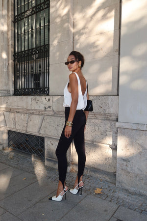 Um clássico sofisticado com um toque sensual. Esta blusa em tom pérola é confeccionada em tecido acetinado fluido, proporcionando leveza e elegância ao look. O decote profundo em “V” é realçado por um delicado detalhe em renda preta, criando um contraste refinado e feminino. Com costas abertas e caimento impecável, é uma peça versátil que transita facilmente entre ocasiões formais e produções noturnas cheias de estilo. Combine com calças de alfaiataria, saias de cintura alta ou até jeans para um visual moderno e chic.