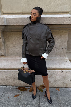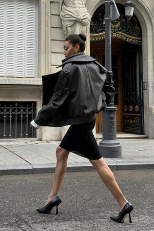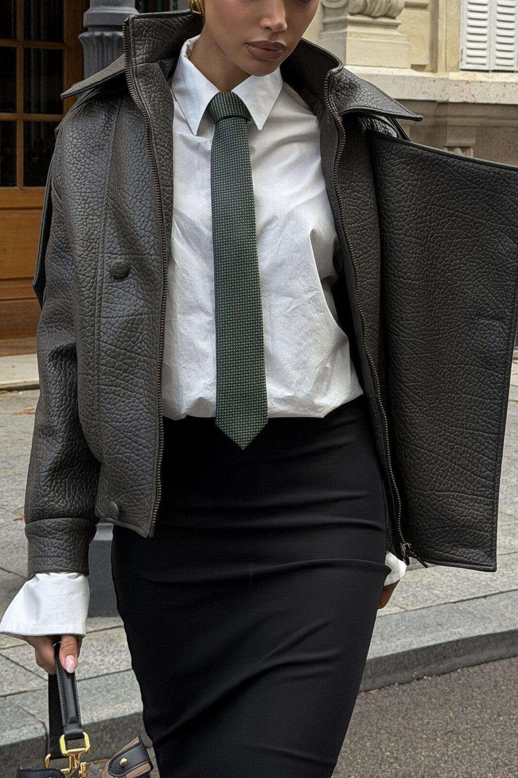 Saia lápis preta sofisticada e versátil, perfeita para compor looks elegantes e modernos. Confeccionada em tecido estruturado de alta qualidade, a peça possui modelagem justa que valoriza a silhueta com conforto e estilo. O destaque fica por conta do detalhe em tule na parte inferior traseira, que adiciona um toque sutil de sensualidade e originalidade ao visual. Ideal para ambientes profissionais ou produções fashionistas para a noite, combina perfeitamente com camisas, blusas e blazers. Fechamento discreto, cintura alta e comprimento midi.
